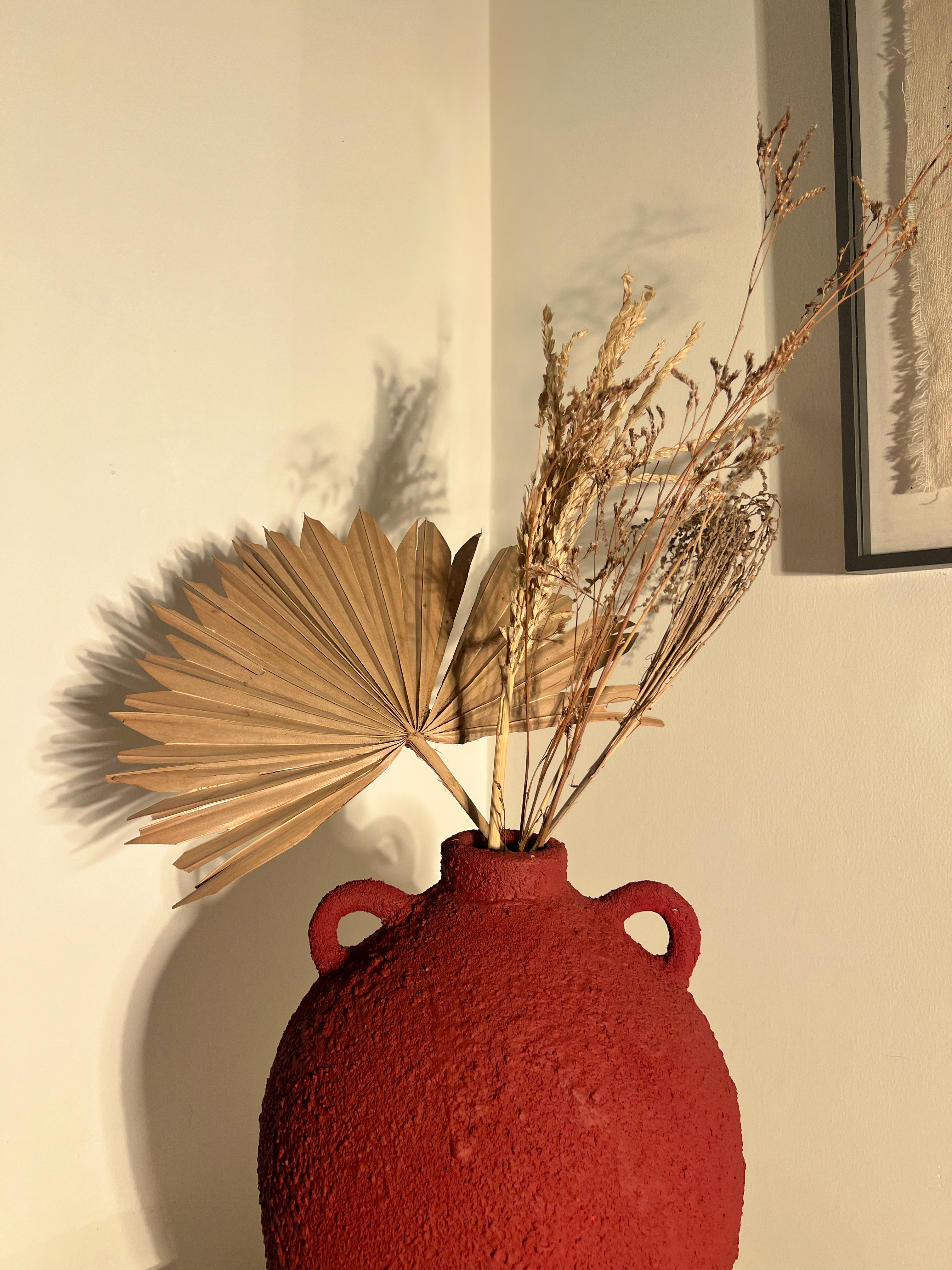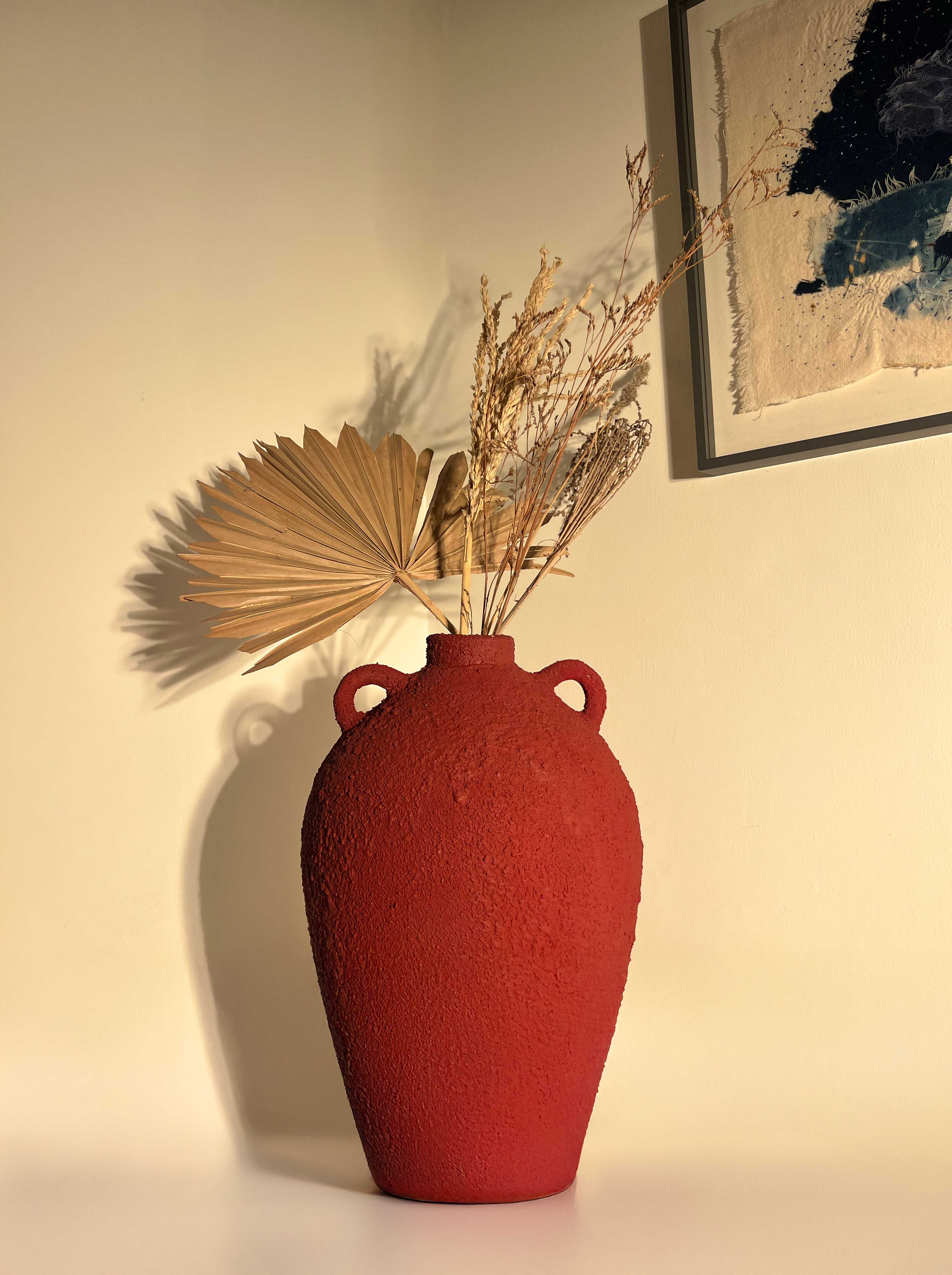 A bold ode to fire and clay, Vermora radiates warmth through its rich red texture and sculptural form. With a raw, handcrafted finish, it adds timeless depth to any modern space.